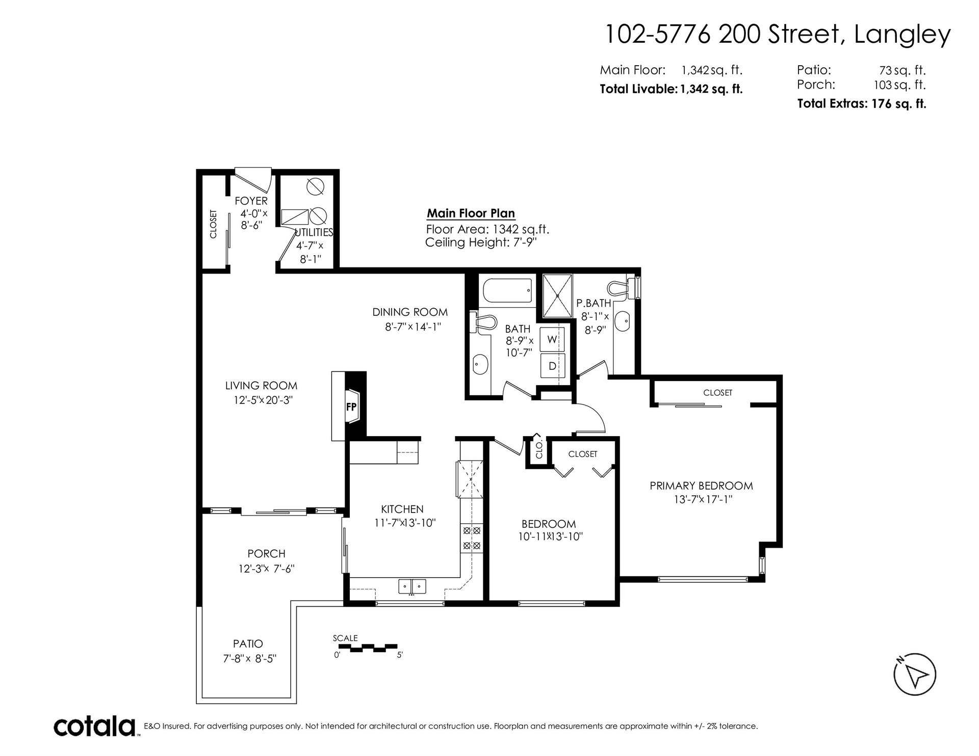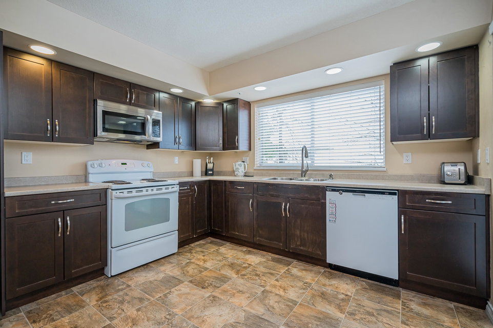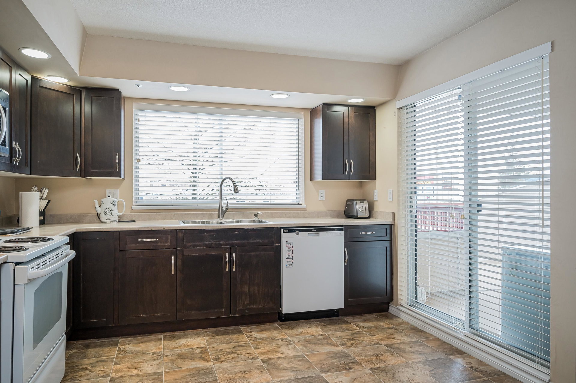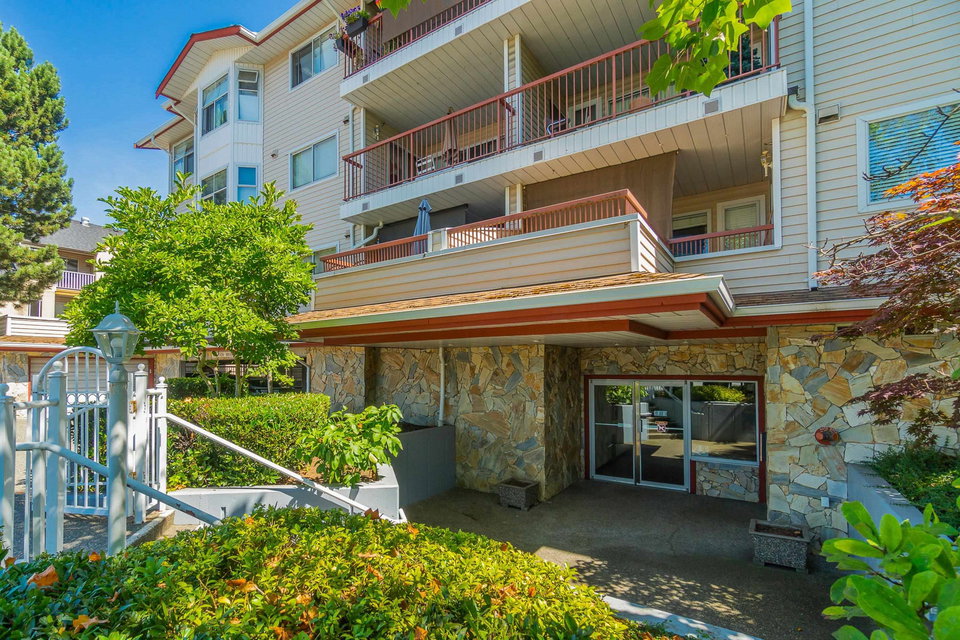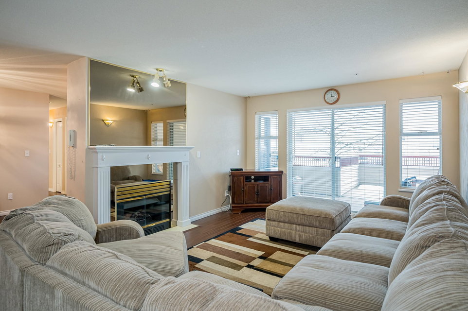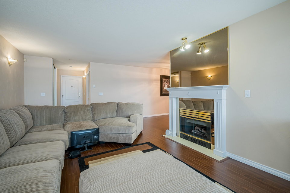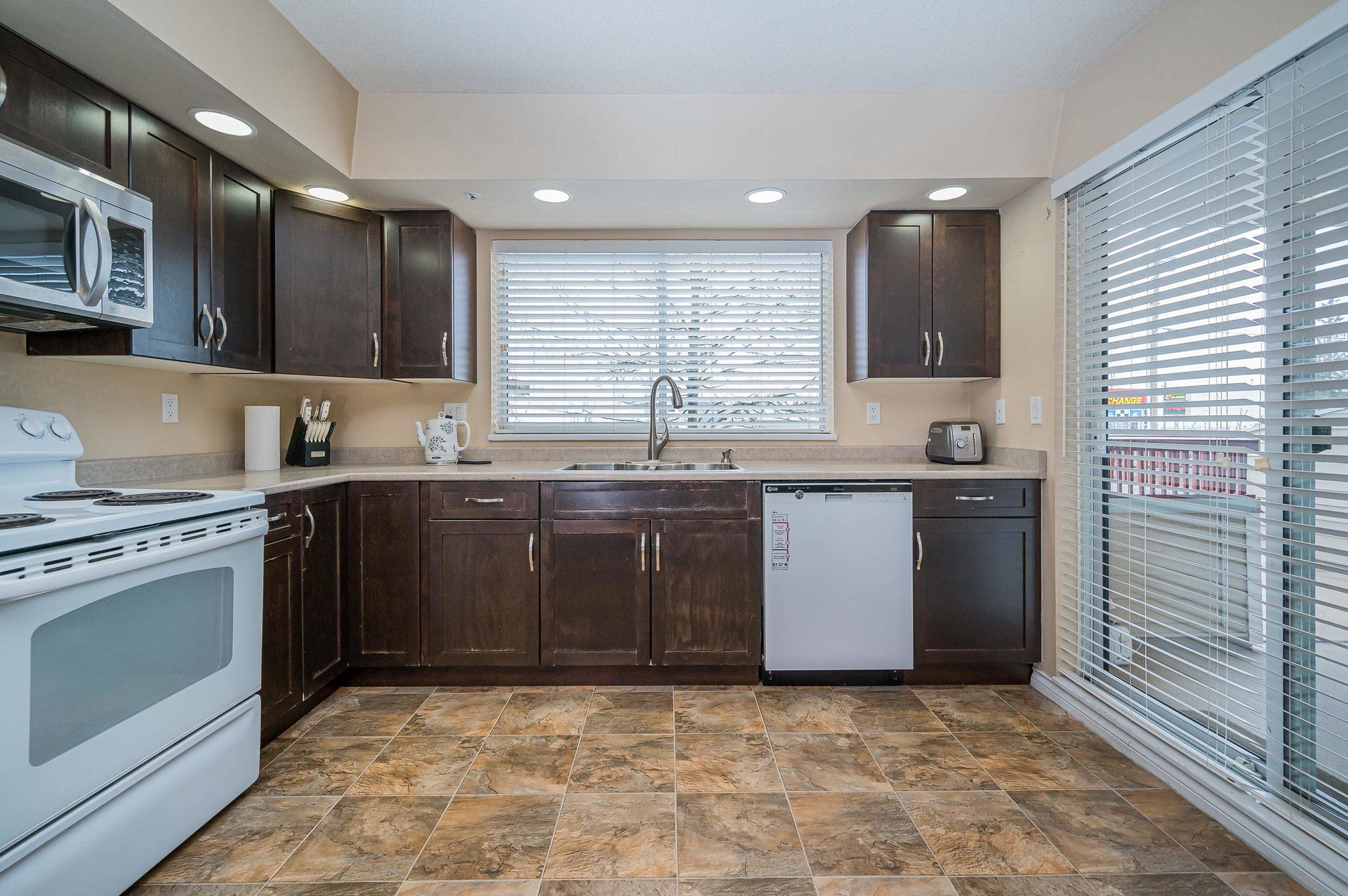 Great value for the square footage. Large 2 bedroom, 2 bathroom home in the heart of town close to transit, shopping, restaurants, and future SkyTrain. Have a look at the floor plan attached in the pictures. Updated kitchen with lots of storage. Could accommodate small dining area in the kitchen but there is also a nice size dining area just off the kitchen. Very spacious living room with gas fireplace. Small complex with nice private setting in the back of the site.