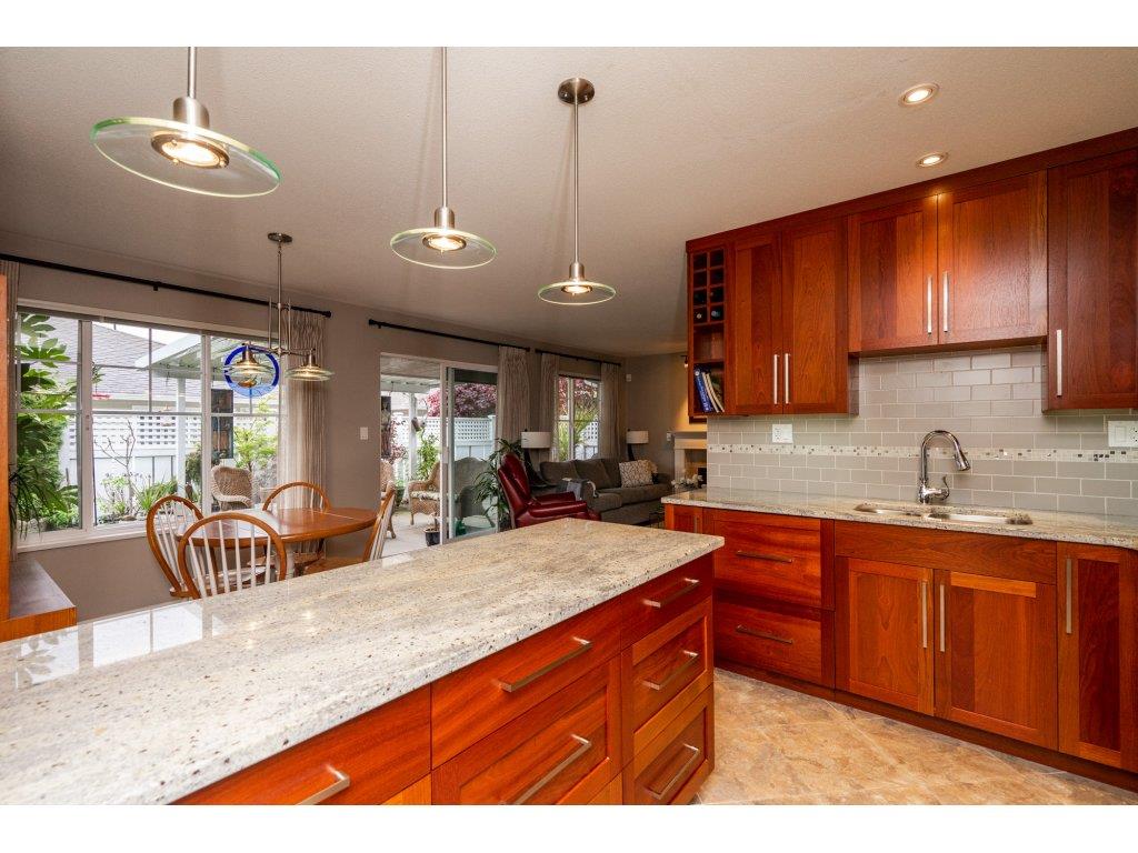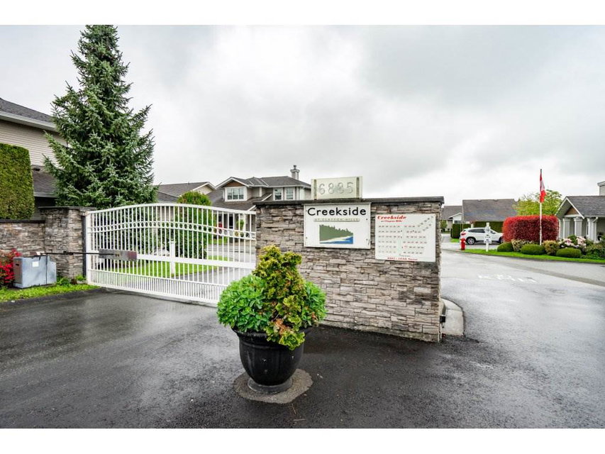Welcome to Creekside! One of Cloverdales most desirable 45+ gated communities. This home is a 1397 sq. ft., Two bdrm, 2 bthrm RANCHER in excellent condition. Recently renovated kitchen as beautiful high end cabinets, stainless appliances and granite counters. The open floor plan features vaulted ceilings in a spacious living and dining area plus a family room off the kitchen overlooking a fenced, private back yard. Master bedroom has 5 pc ensuite with seperate walk-in shower,large soaker tub and 2 sinks. Breakfast area off the kitchen has a nice view of the covered deck and garden. There is even air conditioning for those hot summer days. Side by side double garage has extra apron parking. Located near the clubhouse.