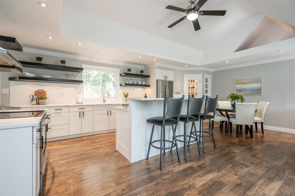 Beautifully updated by professional tradesman. One level, 3 bedroom home is perfectly situated on a quiet Brookswood street near Bell park and local shopping. The 11,562 sq. ft. lot is entirely surrounded by a cedar hedge for maximum privacy. There is a fenced-in RV parking area that is approx. 42×19. This home is so inviting with a welcoming entrance into an open plan living, dining and kitchen area that is bright with vaulted ceilings, soft colors, gas fireplace and a fabulous kitchen. Massive walk-in closet in Master Bdrm plus ensuite with heated floors.There is extended living off the kitchen on the covered deck. Perfect for summer enjoyment. Or how about the firepit area? There is even a workshop area in the garage. This is a corner lot so there is lots and lots of extra parking.