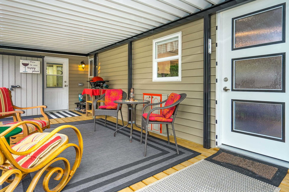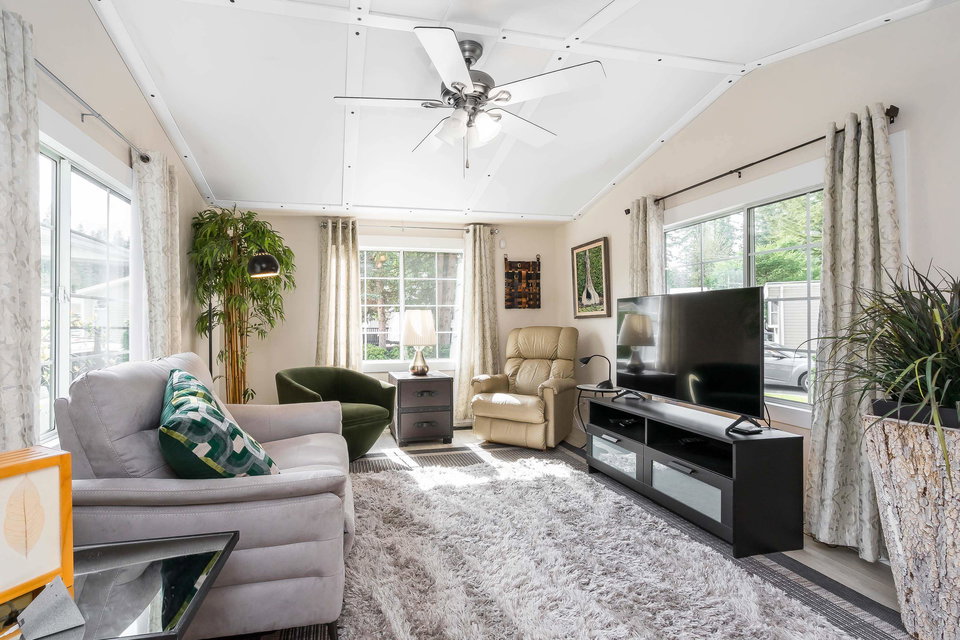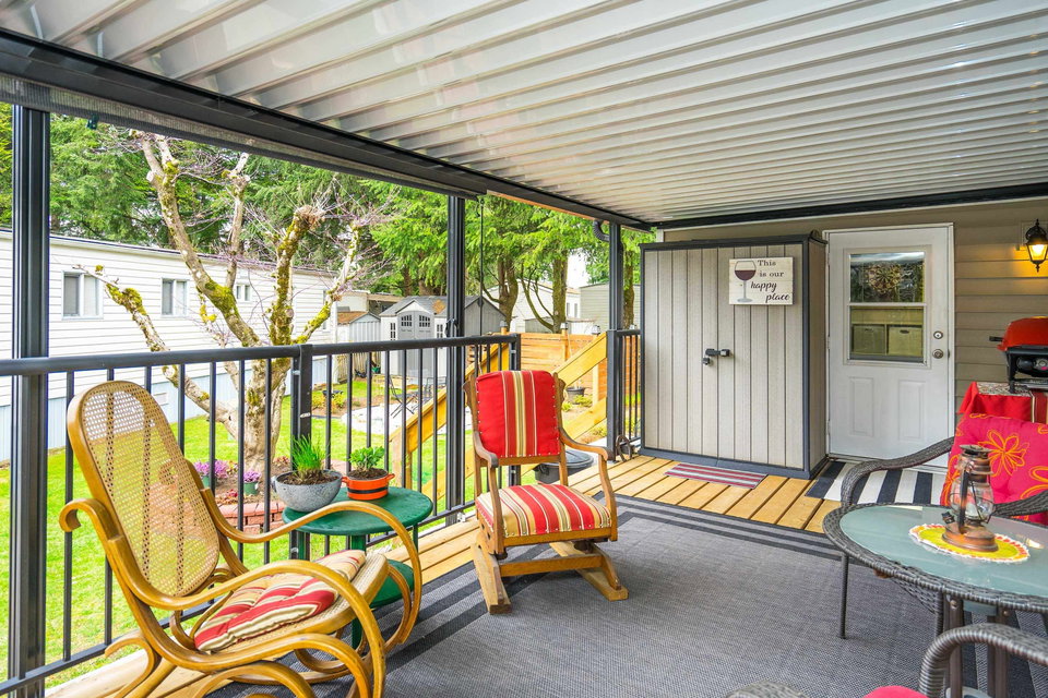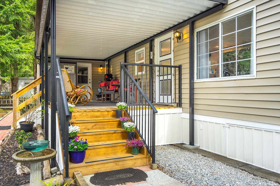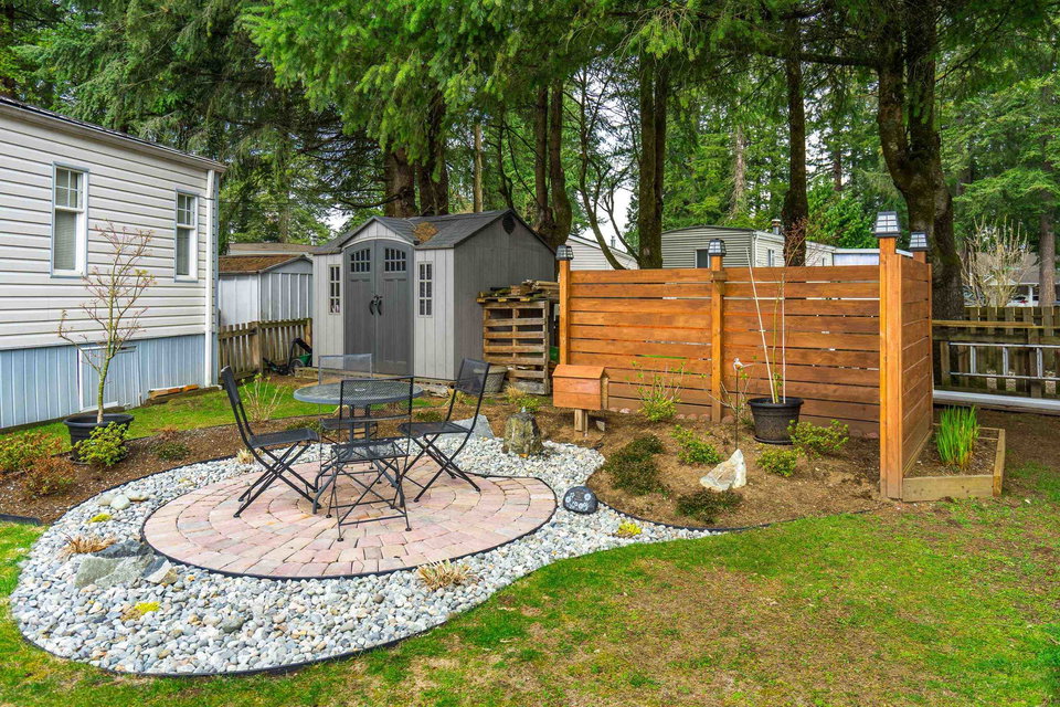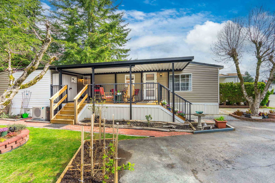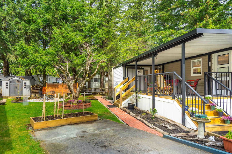This lovely gem of a home is tucked away in Forest Green estates. It is a 55+ gated community and a great place to call home. Current owners have restored this two bedroom home with all new siding, heat pump, new bathroom and kitchen, new floors, very spacious covered deck plus more. Absolutely move in ready! One of the benefits of this kind of community living is the chance to have your own garden, and this yard is exceptional. They have created an outdoor oasis which is ready to enjoy through many seasons. There is a large garden shed for tools and another area for small outdoor workstation. The park is set in walnut grove in an area that is both convenient and quite surprising. Yard offers 3 parking area and back lane access. Small pet welcome.