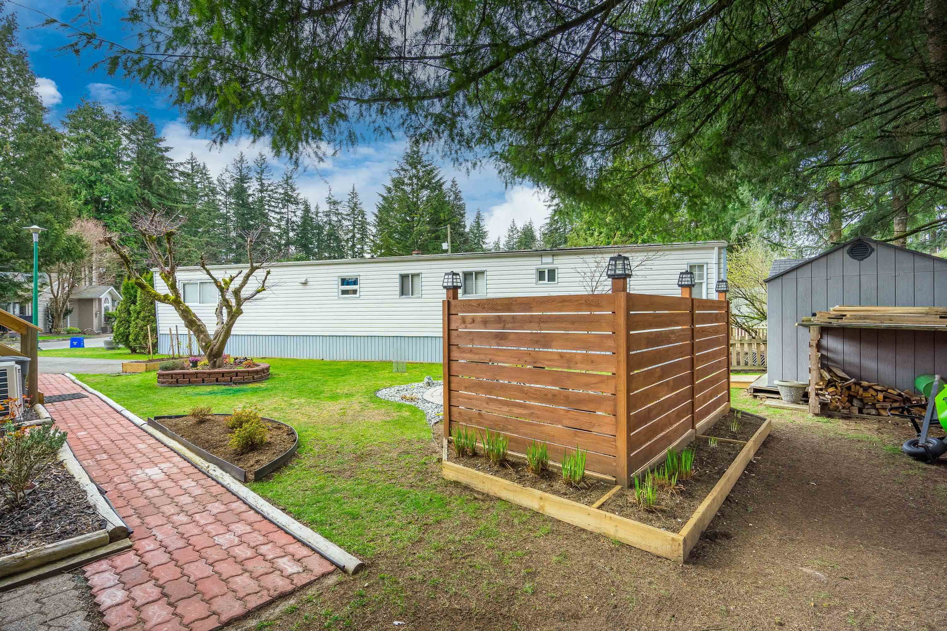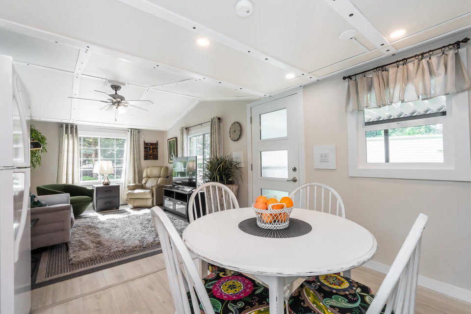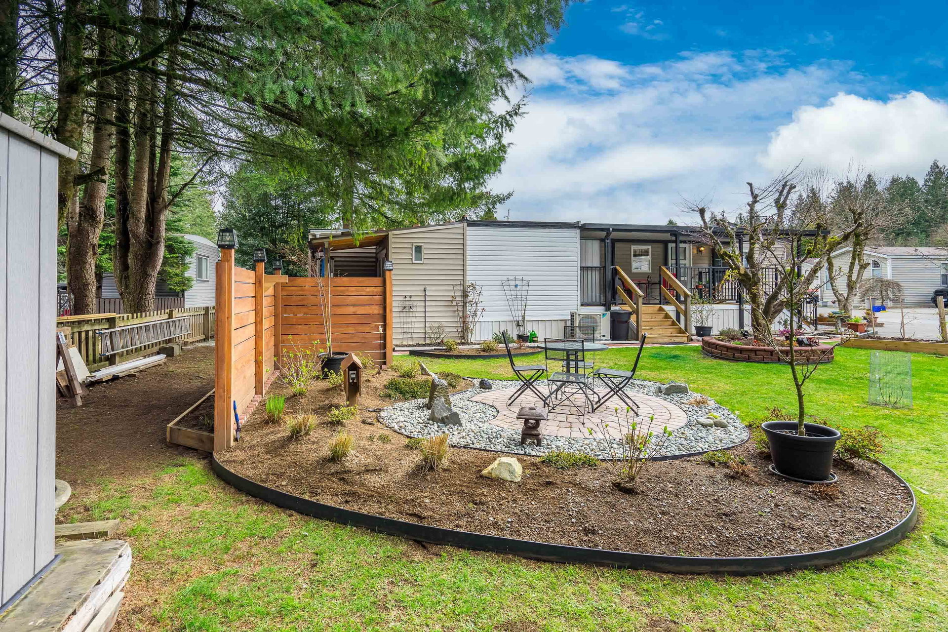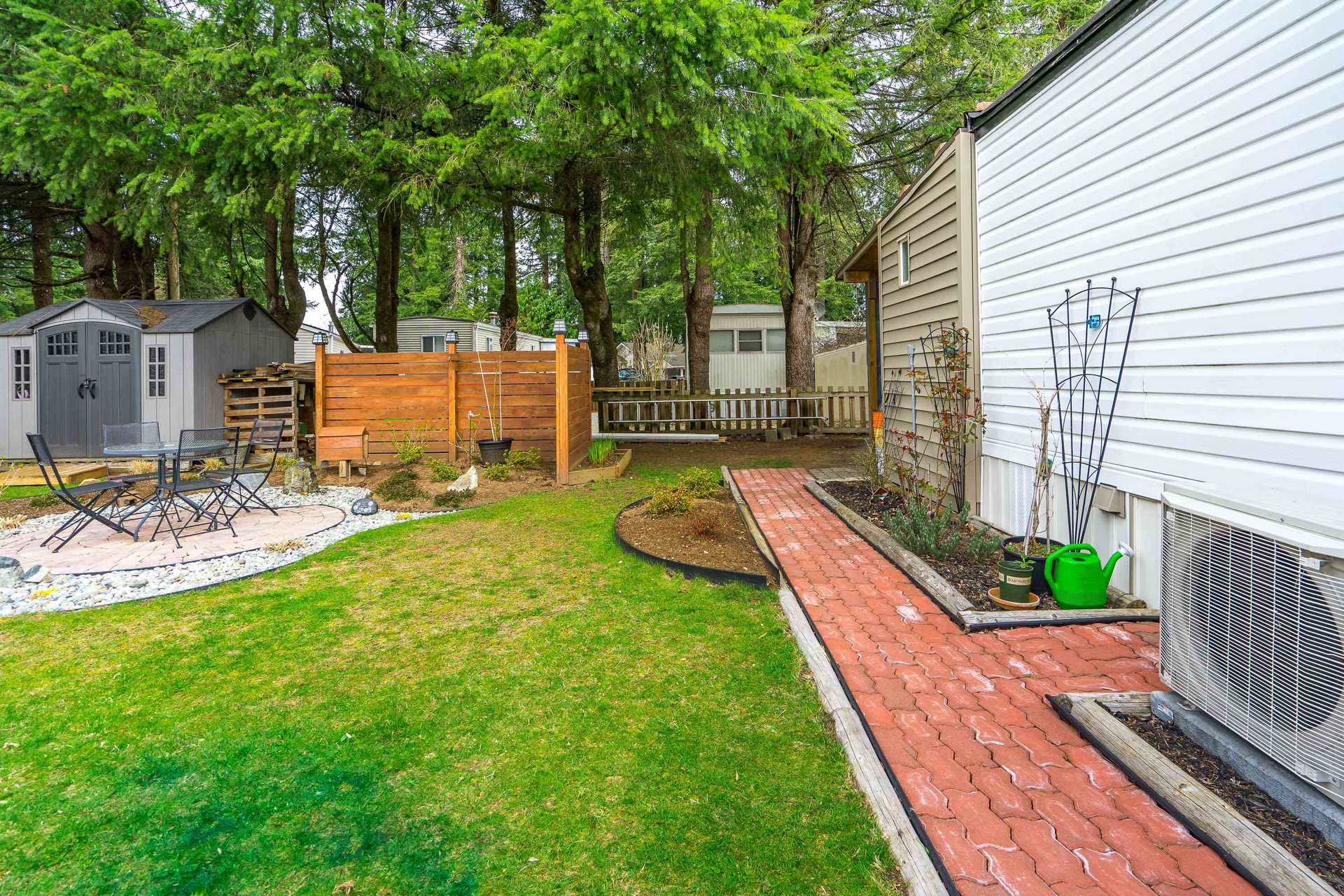 This lovely gem of a home is tucked away in Forest Green estates. It is a 55+ gated community and a great place to call home. Current owners have restored this two bedroom home with all new siding, heat pump, new bathroom and kitchen, new floors, very spacious covered deck plus more. Absolutely move in ready! One of the benefits of this kind of community living is the chance to have your own garden, and this yard is exceptional. They have created an outdoor oasis which is ready to enjoy through many seasons. There is a large garden shed for tools and another area for small outdoor workstation. The park is set in walnut grove in an area that is both convenient and quite surprising. Yard offers 3 parking area and back lane access. Small pet welcome.