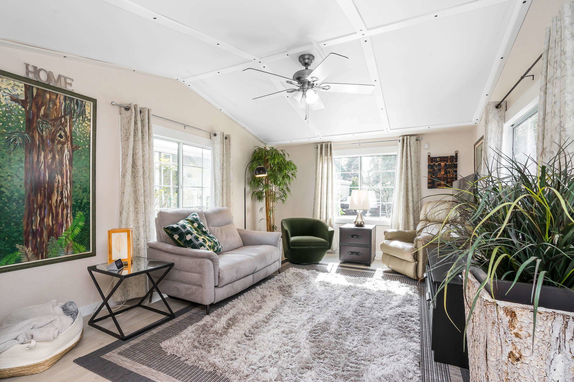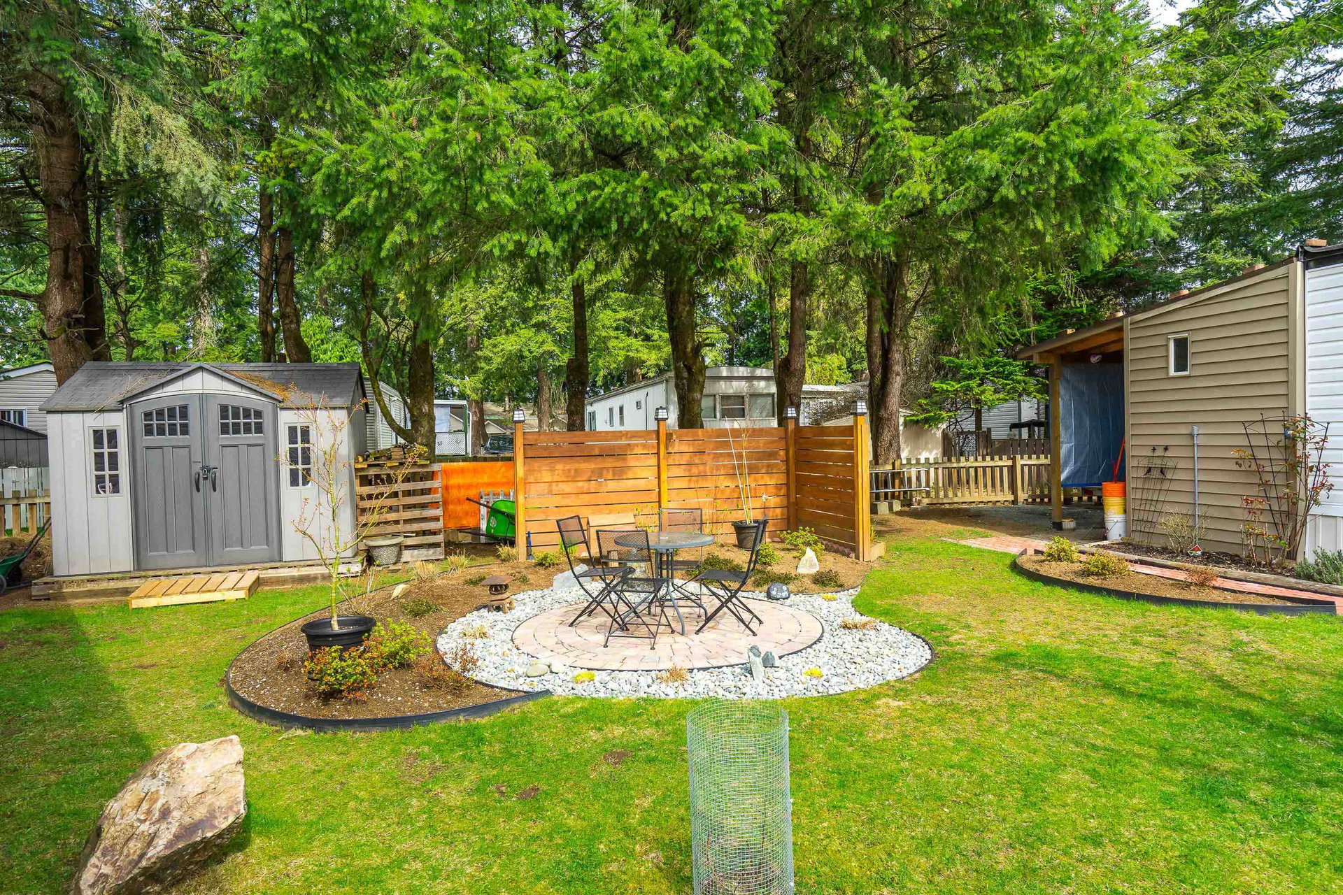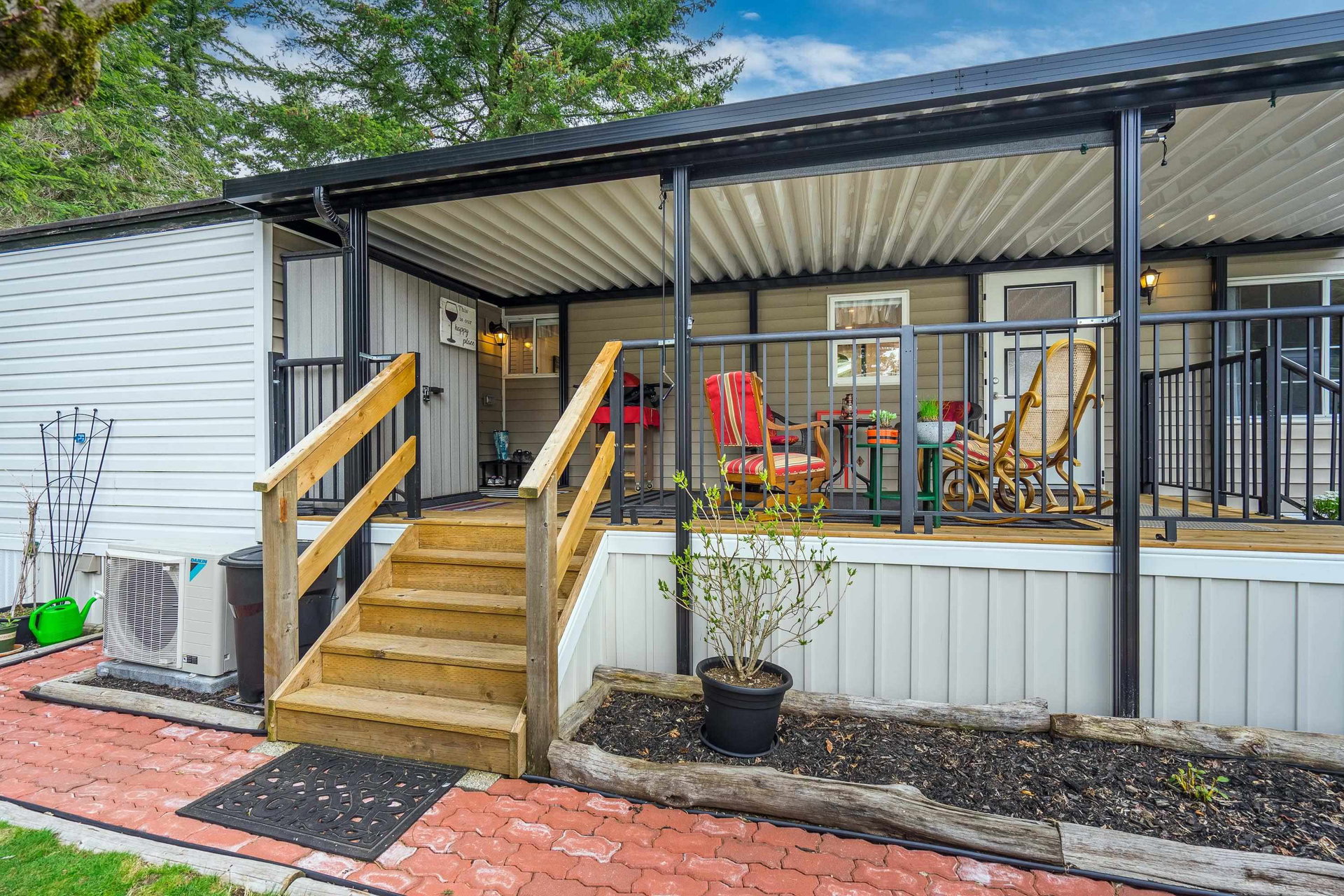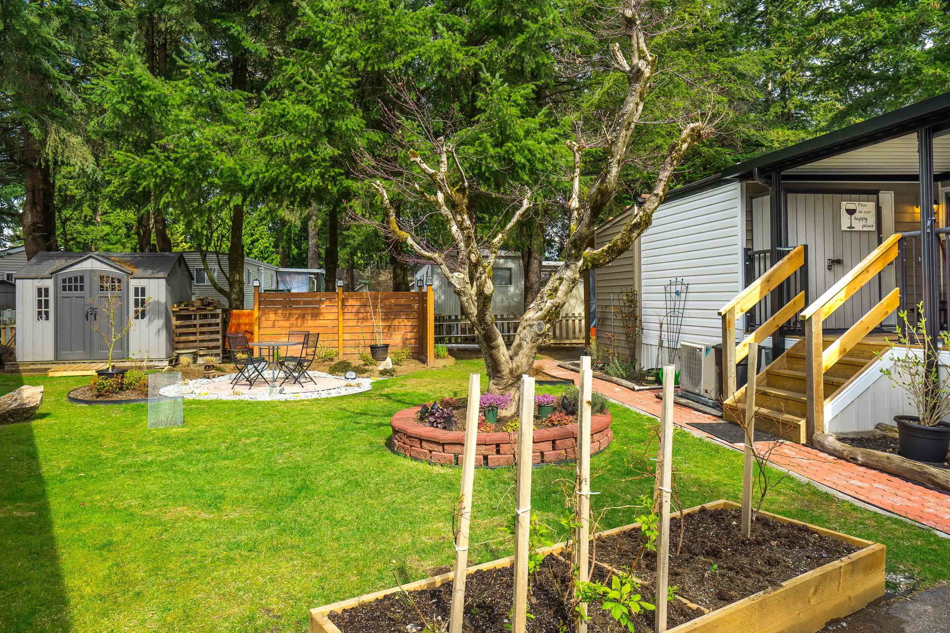 This lovely gem of a home is tucked away in Forest Green estates. It is a 55+ gated community and a great place to call home. Current owners have restored this two bedroom home with all new siding, heat pump, new bathroom and kitchen, new floors, very spacious covered deck plus more. Absolutely move in ready! One of the benefits of this kind of community living is the chance to have your own garden, and this yard is exceptional. They have created an outdoor oasis which is ready to enjoy through many seasons. There is a large garden shed for tools and another area for small outdoor workstation. The park is set in walnut grove in an area that is both convenient and quite surprising. Yard offers 3 parking area and back lane access. Small pet welcome.