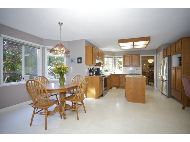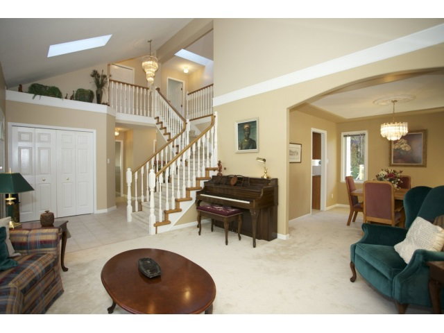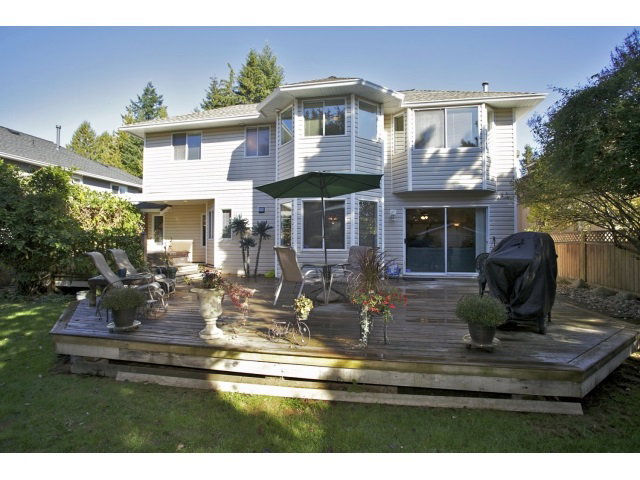 This FOREST GLENN HOME has a dramatic open plan that is bright and welcoming. The formal living room is ready for the entertainer. It is just off the grand entry and features vaulted ceilings and cozy fireplace to gather around. The family room is adjacent to the kitchen and overlooks a beautiful back yard with an expansive deck and HOT TUB. Original oak kitchen is family friendly with lots of space, including an island and pantry. Two pc powder room and den on the main floor. Three bedrooms up with huge soaker tub in the ensuite. New roof just 4 years ago plus upgraded appliances and hot water tank. CLOSE to schools and transit. Spotlessly clean and move in ready.